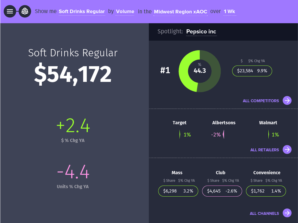 The Results: Nielsen launching this API Suite is pretty big deal in the world of larger to medium size CPG companies. This was one, if not the very first, digital data innovation for Nielsen, ever. Our application has been presented at trade shows to demonstrate to Nielsen clients how they can use the Nielsen API’s to create data visualizations using these API’s. The overall response was their clients want to buy the app that we designed. The app itself was never intended to be sold or distributed of course.